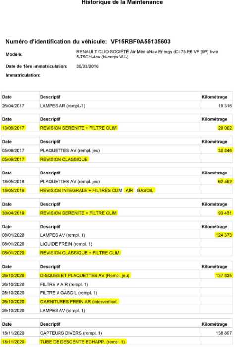 | Etat freins AV | Aucuns défauts |