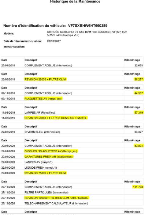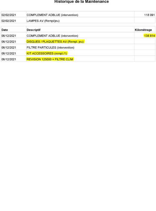 | Etat Moteur | Aucuns défauts |