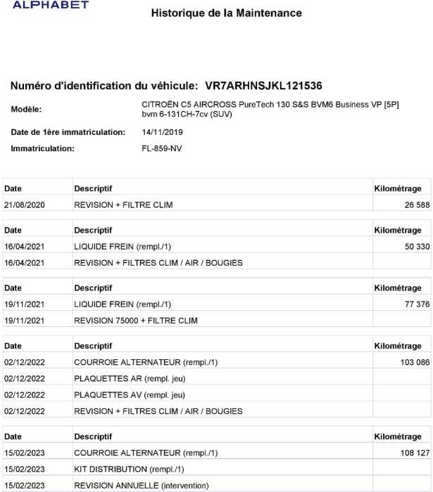 | Accident antérieur | Aucune info |