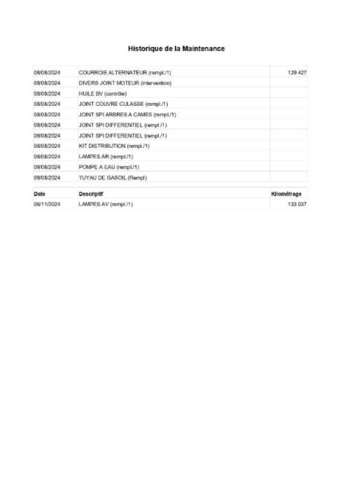 | Etat embrayage | Aucuns défauts |