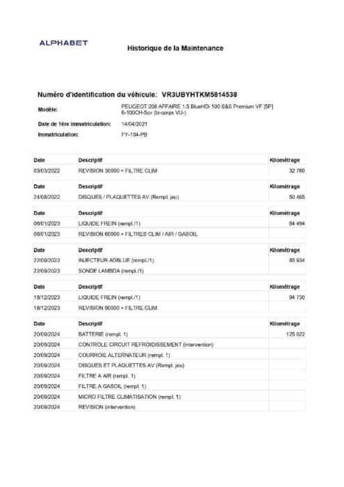 | Immatriculation | FY-104-PB |