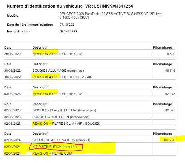 | Etat Moteur | Aucuns défauts |