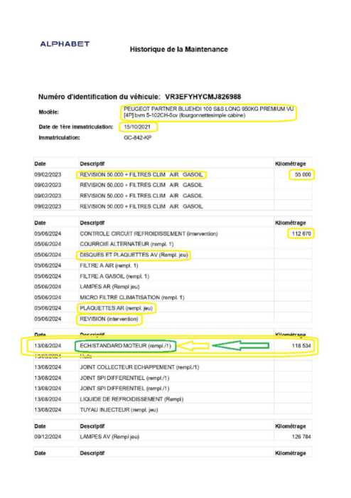 | Etat Moteur | Aucuns défauts |